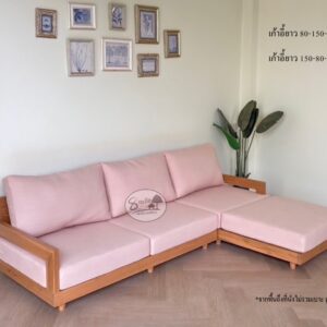 ชุดโซฟาไม้สักทอง เบาะผ้าฝ้าย